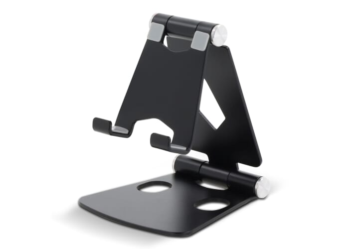 Een musthave op elk bureau! Ideaal als je videogesprekken met je telefoon voert. Pas ‘m gemakkelijk aan in elke gewenste hoogte en hoek, wanneer je maar wilt. Deze aluminium smartphonestandaard heeft een handig vouwbaar ontwerp en is voorzien van antislip pads. Bovendien kun je door het open design je oordopjes, koptelefoon en laadkabel aansluiten.