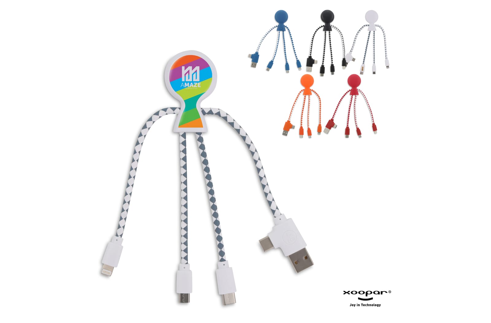 Mr. Bio is een multi-oplaadkabel, met een dubbele USB & USB-C ingangsconnector en drie verschillende connectoren om je apparaten ecologisch op te laden! Mr. Bio is gemaakt van gerecycled plastic & DuPont Tyvek kabels. De totale gerecyclede inhoud is 61% op basis van het gewicht van het product. De kabel is verpakt in een duurzame FSC-gecertificeerde papieren envelop. Xoopar-producten mogen niet worden verkocht in Frankrijk en Spanje.